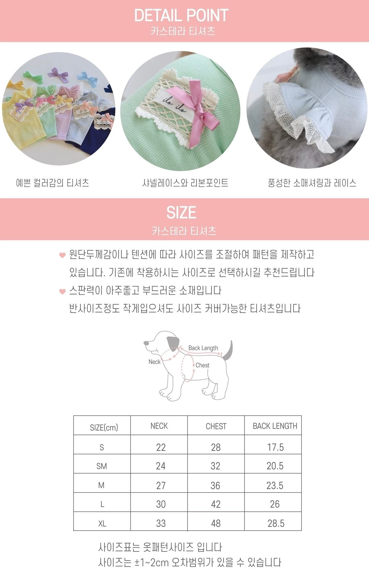 SM:胸囲32cm 着丈20.5cm 首回り24cm