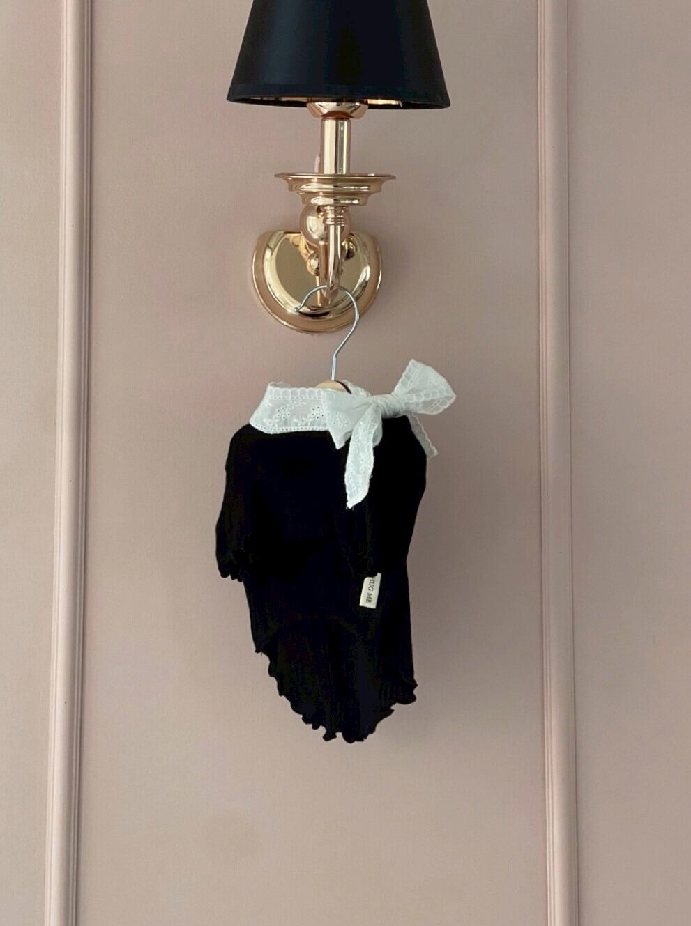 ネックラインに沿ってつながったレーススカーフポイントで、首周りに合わせてきれいにリボンを結んでください♡