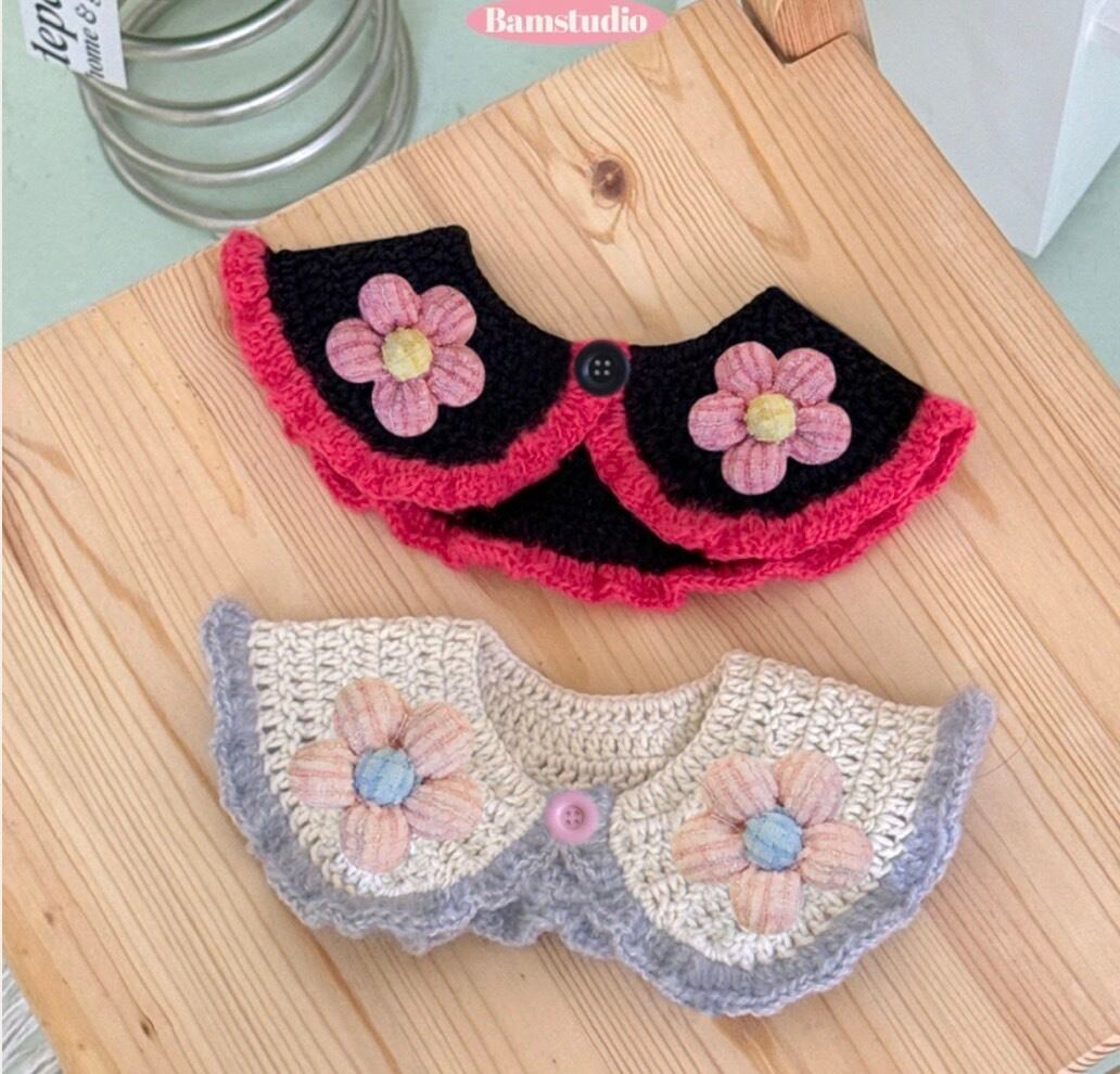 秋のムードが感じられる色の組み合わせとツイードフラワーの副資材でこれからの秋がもっと感じられるモヘアツイードフラワーポンポンケープです!!