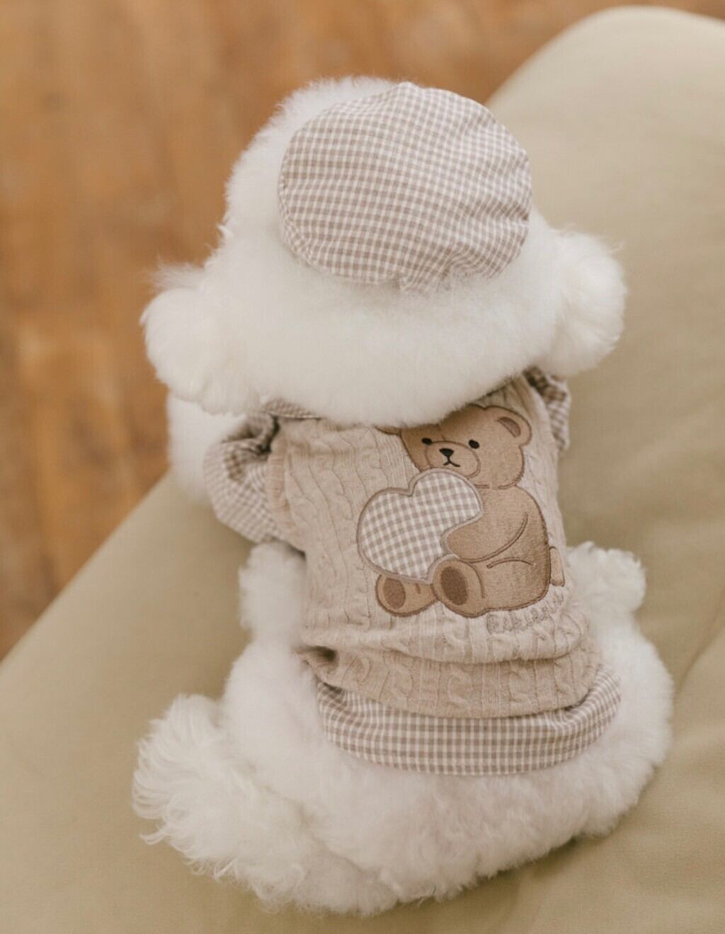 着心地の良いニットベストに、温かみのある感性を捉えたテディベアの刺繍とハートのアップリケが引き立てられ、今年のブラウニーコレクションはさらに特別なものになっています♡