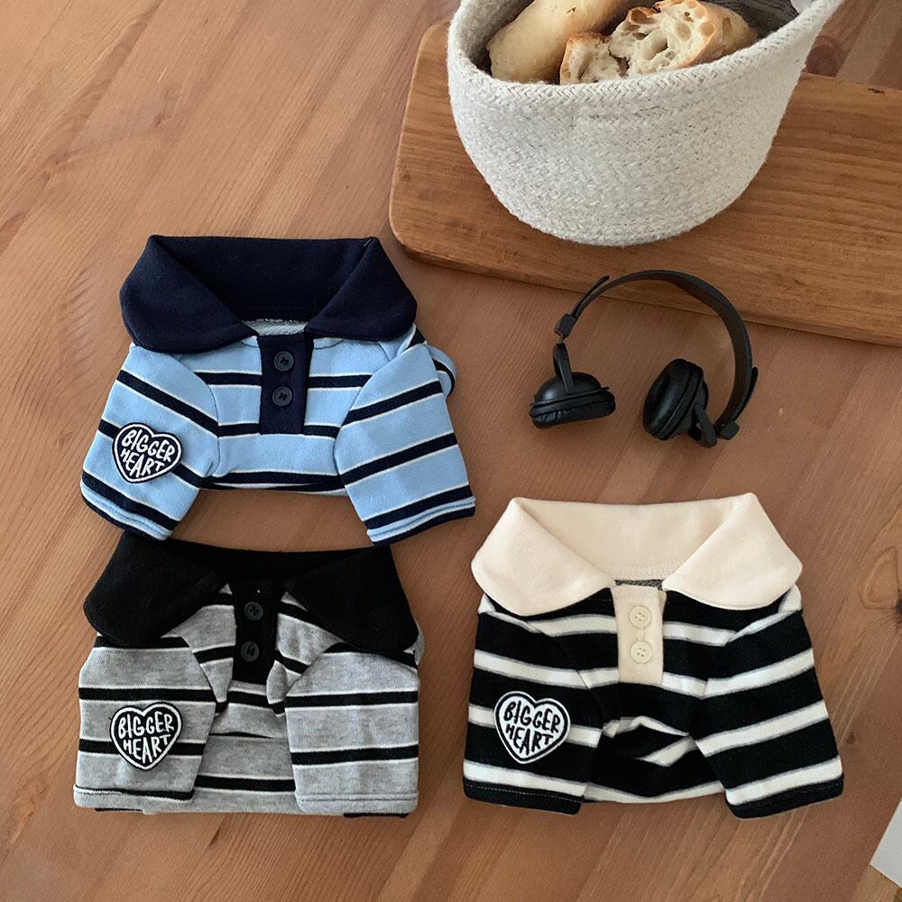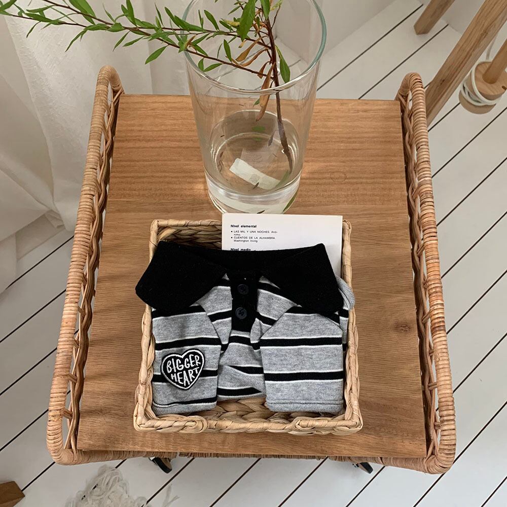 ベーシックなストライプ生地で飼い主様とシミラールックを演出することができ、白いカラーではなくカラー配色カラーデザインでラブリーなポイントをプラスしました。