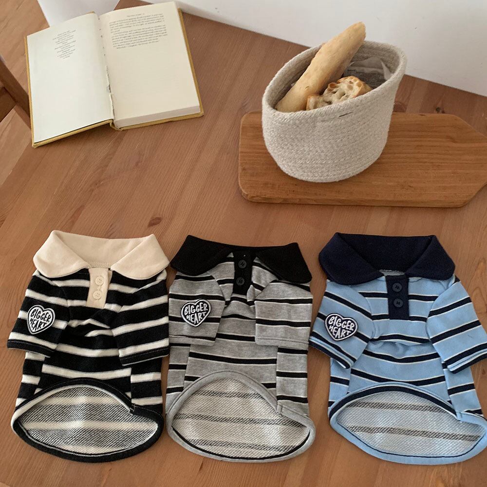 柔らかくて厚手の素材で製作され、わんちゃんたちが一日中楽に着用できるカラーストライプTシャツです。