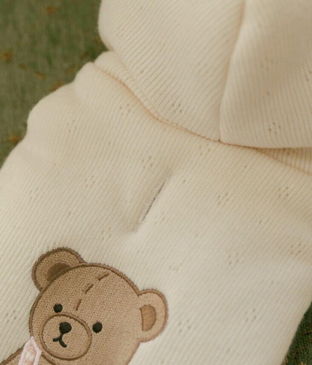 アイレットニット生地を使用し、保温性に優れたフリース生地と4オンスのコットン詰め物を使用しお子さまを軽やかに、心地よく包み込みます。
