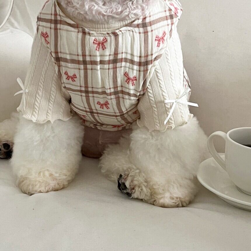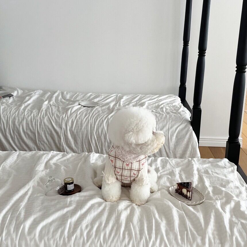 表面はクマパターンの純粋なコットンキルティング生地、内側は柔らかいリボンガーゼの生地でどっちに着ても完璧にきれいで肌が敏感なわんちゃんにも満足! :)