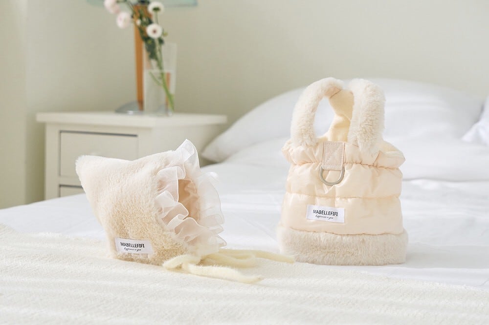 暖かく明るいフェイクファー生地と+オーロラグロス生地は、光のたびに柔らかく変化します。