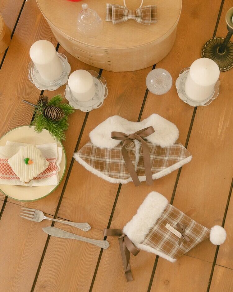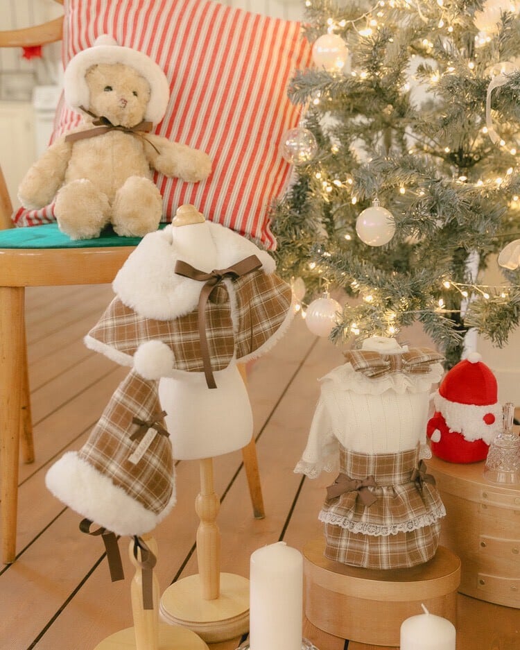ヴィンテージチェック柄、居心地の良いファー、美しいレースのディテールを加えたアイテムで構成されており、まるで小さな妖精のように輝く年末のルックを完成させています‼