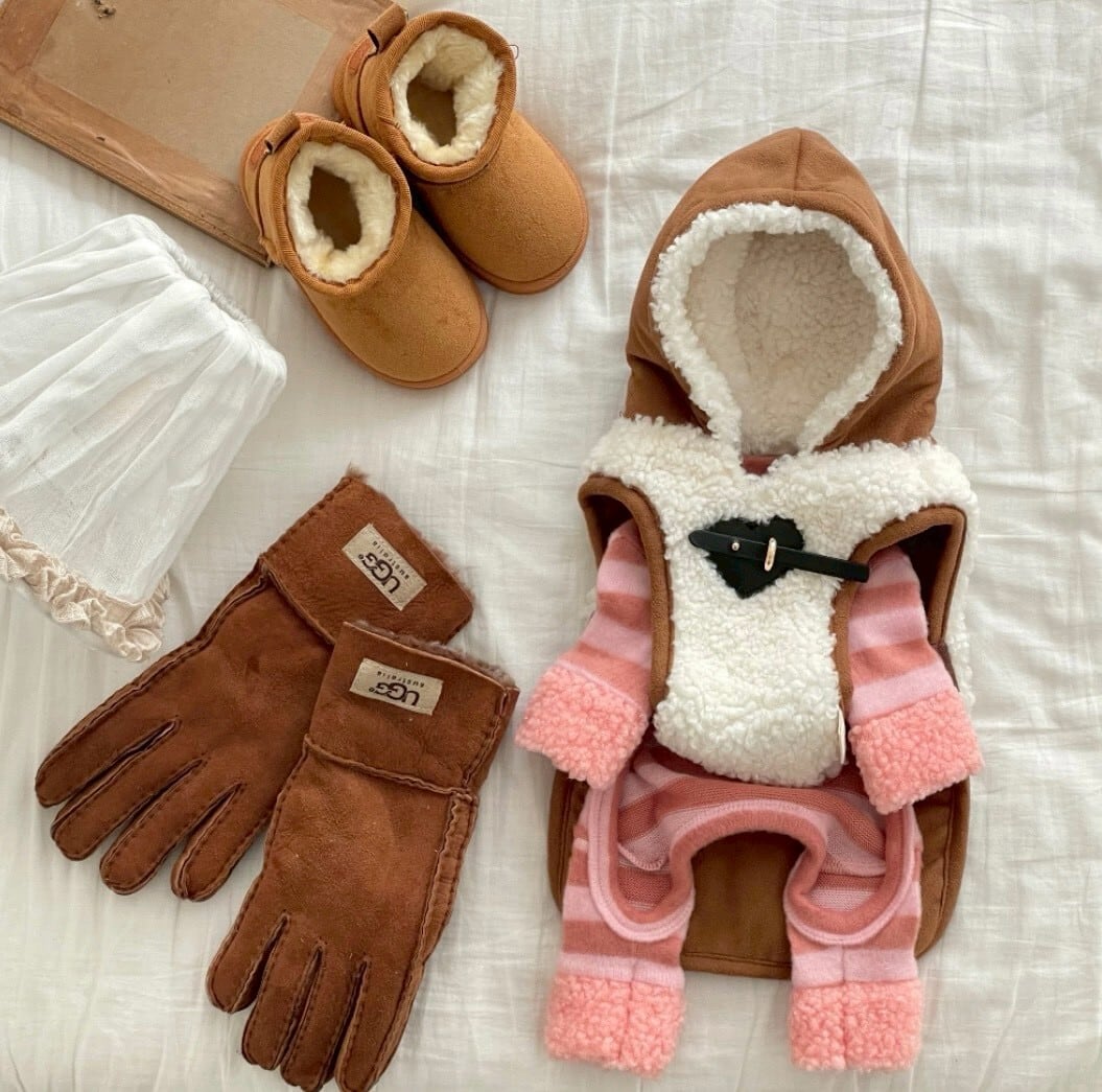 長さのあるファー生地が調和して素敵で暖かく楽な製品です♡