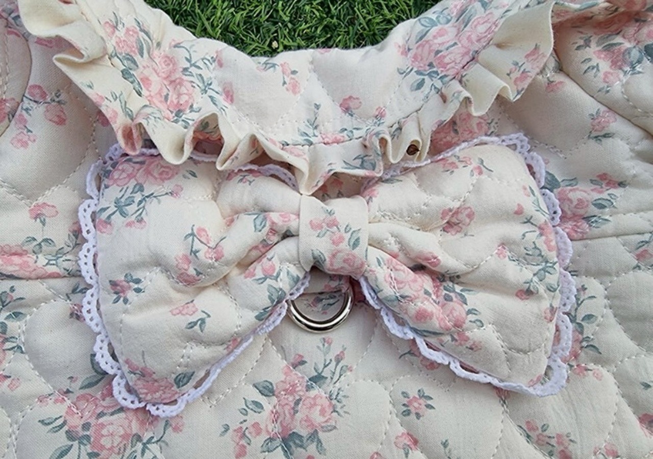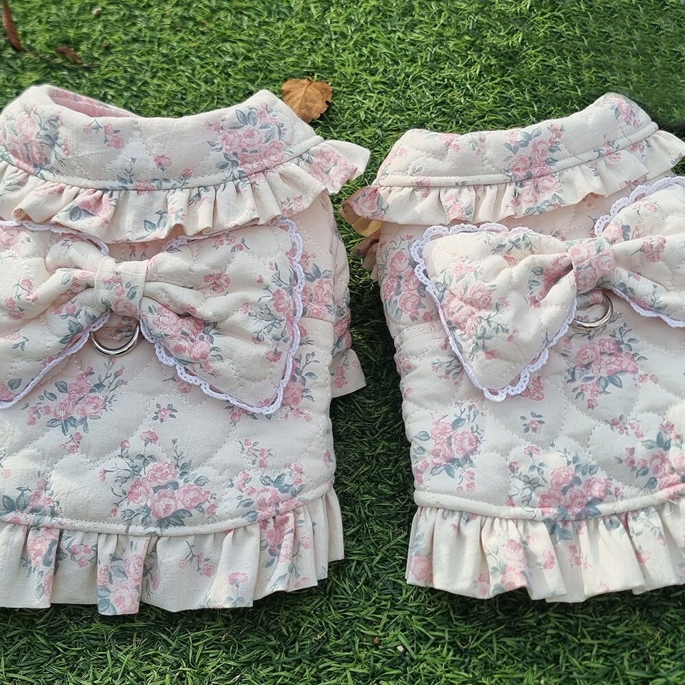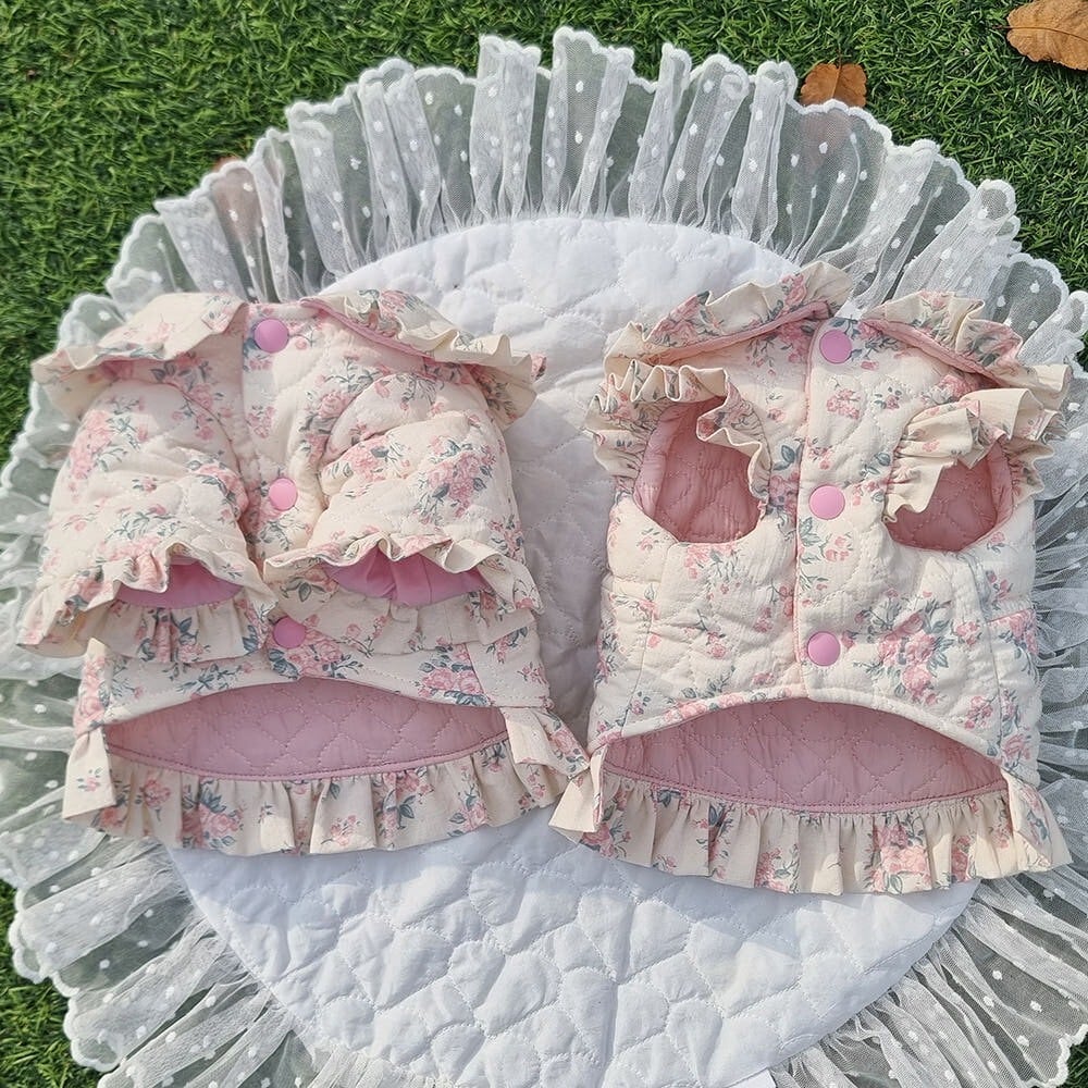 【jjujju closet】Dog winter down lodge ruffled padded harness 2type