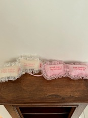 ベルベット生地の特性上、英語以外の言語は鮮明に印刷されにくいため、