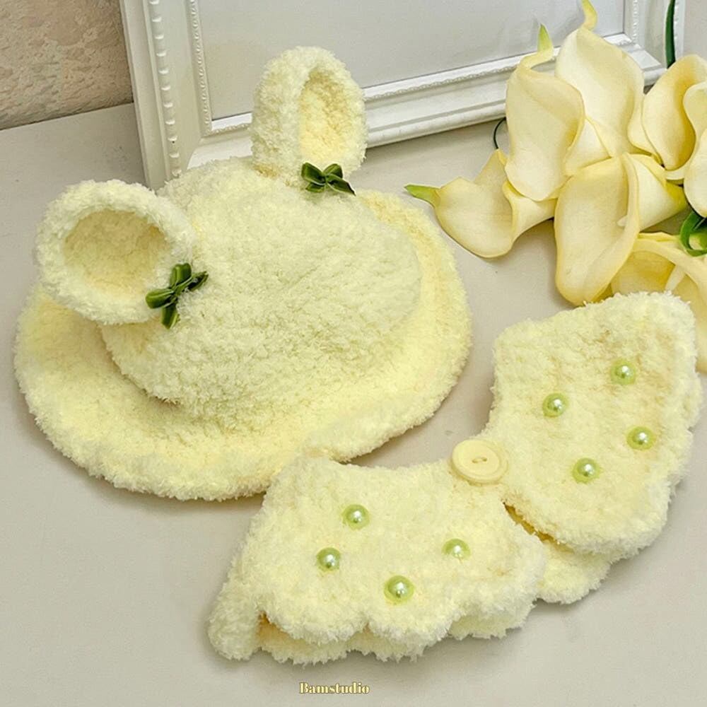 【bams.tudio】Fluffly Bear Ribbon Buckethat4color