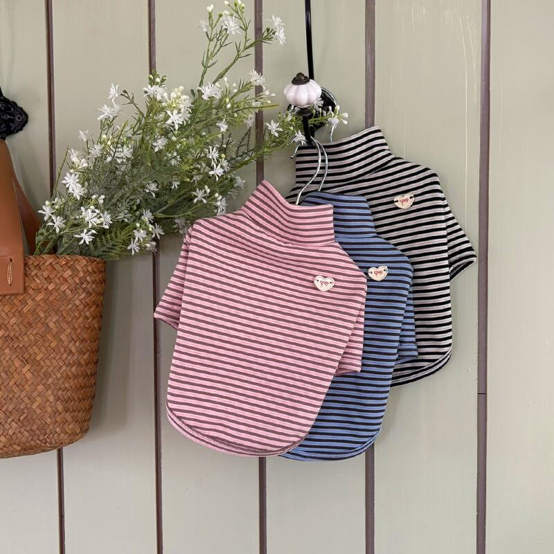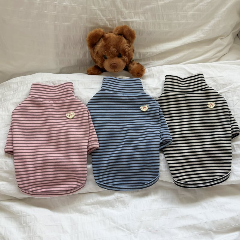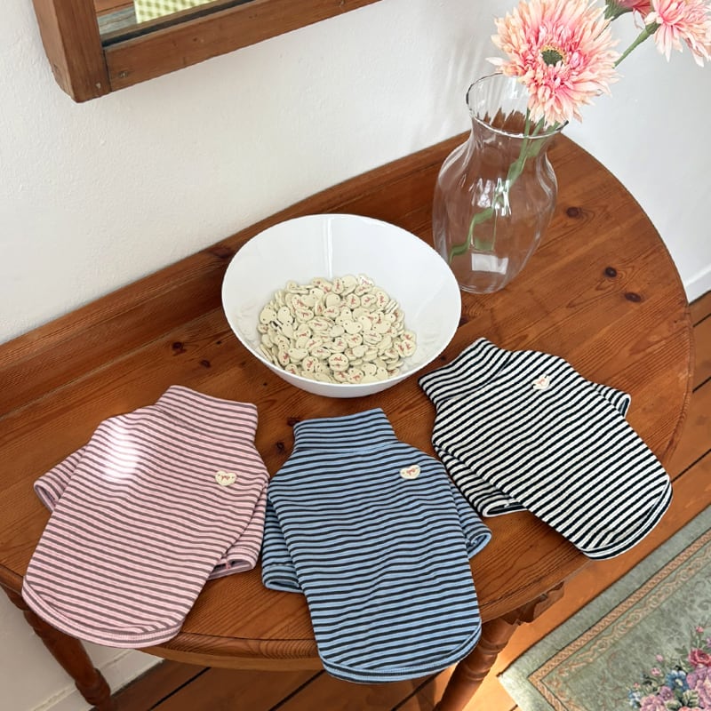 【pomuluselect.Korea】ハートボタンボーダーシャツ 4color
