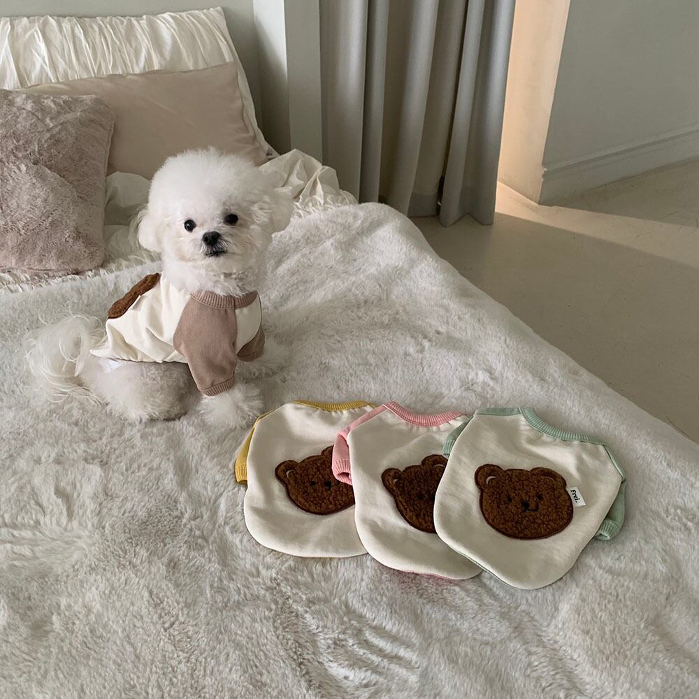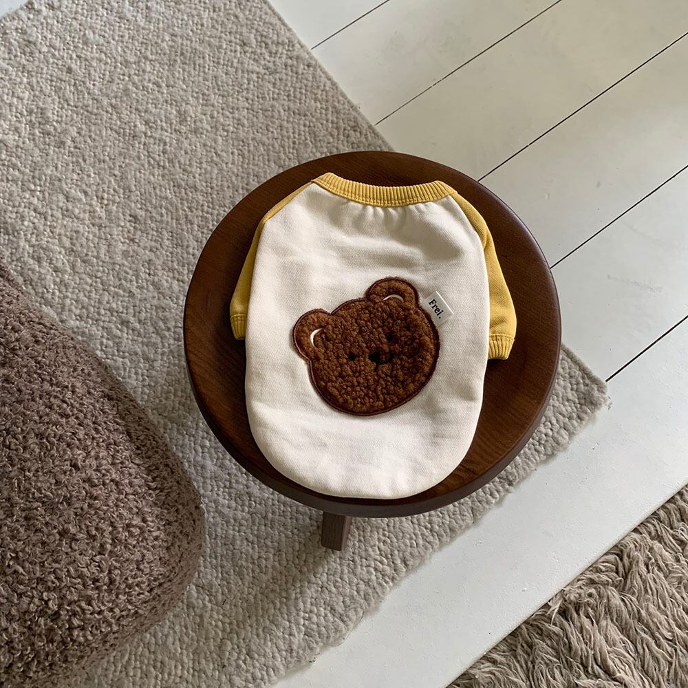 季節の変わり目に単独で着やすく活用度の高いデイリーマンツーマンTシャツです ほのかにポイントとなるカラー構成で、どんな子に着ても失敗のないデイリーコーディネートの完成写真を撮る時もくまのワッペンのおかげで、さらにキュートでふんわりとしたムードを演出します♡♡