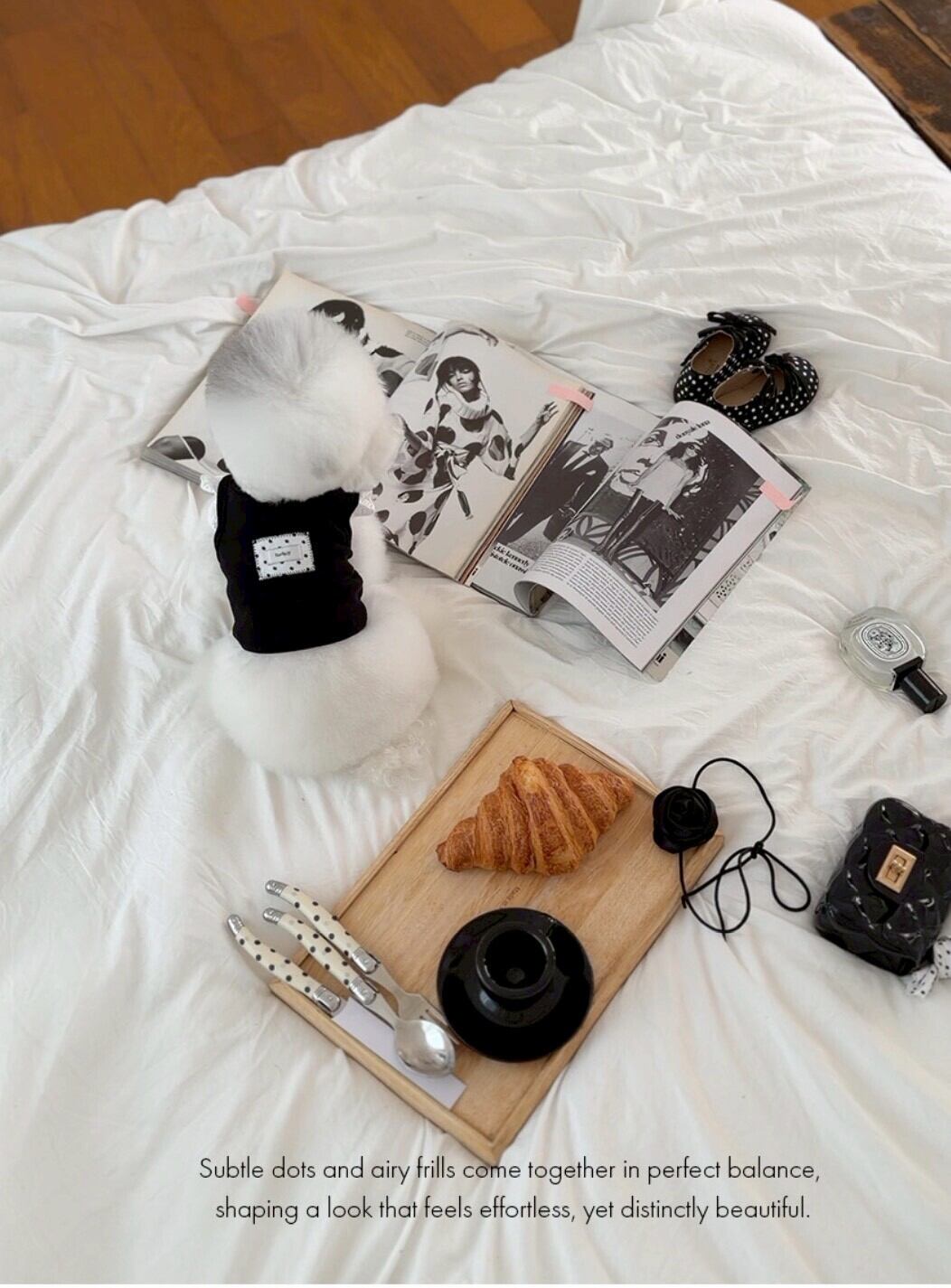 肩に施されたフリルのディテールは、派手すぎず愛らしいアクセントとなり、単品でも十分に完成度の高いコーディネートを実現します。