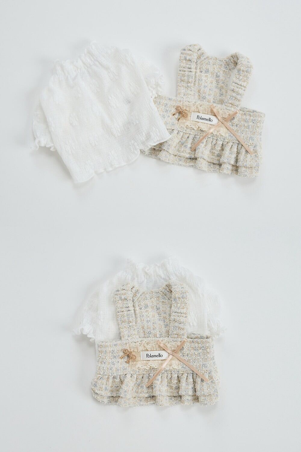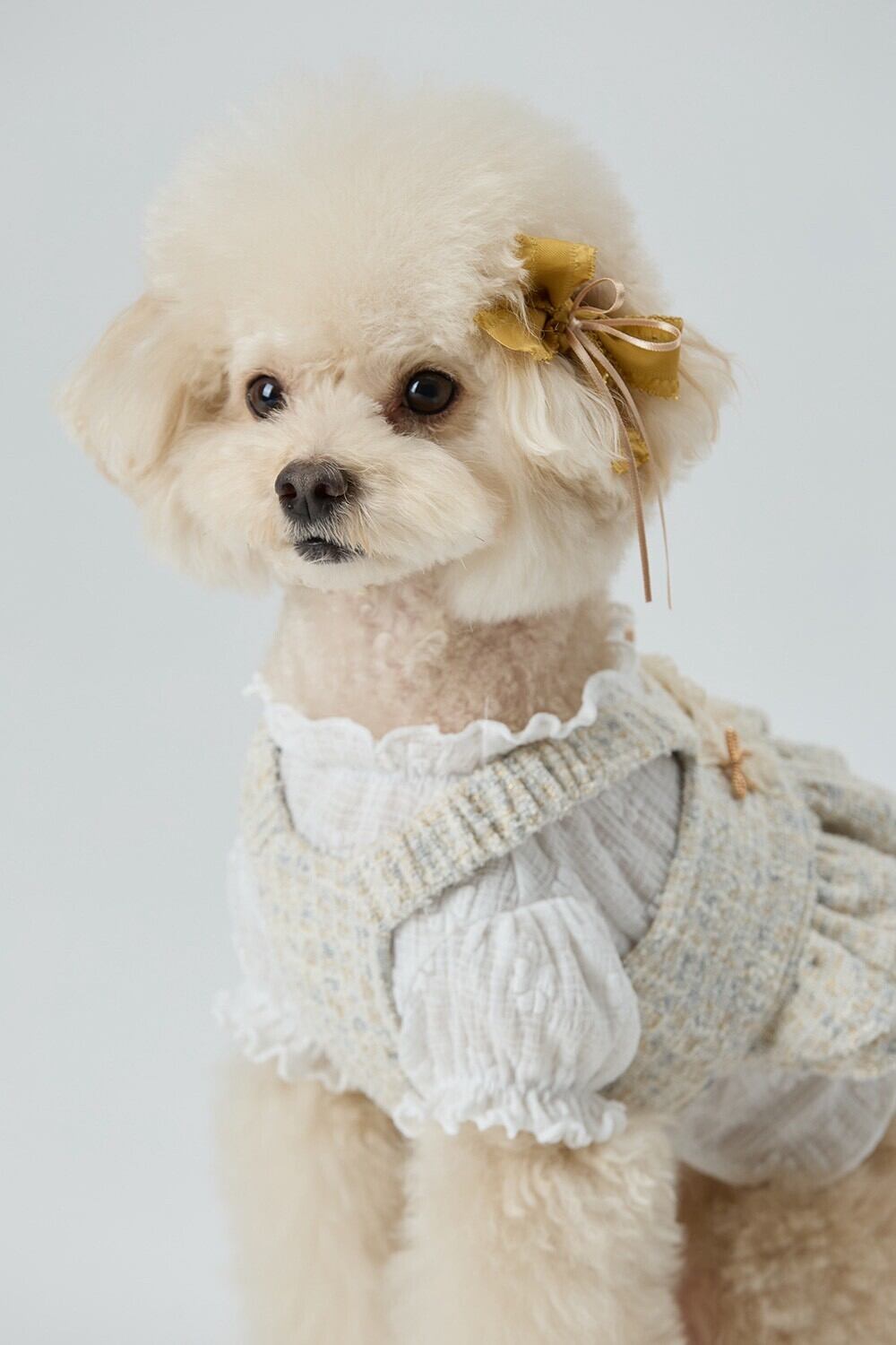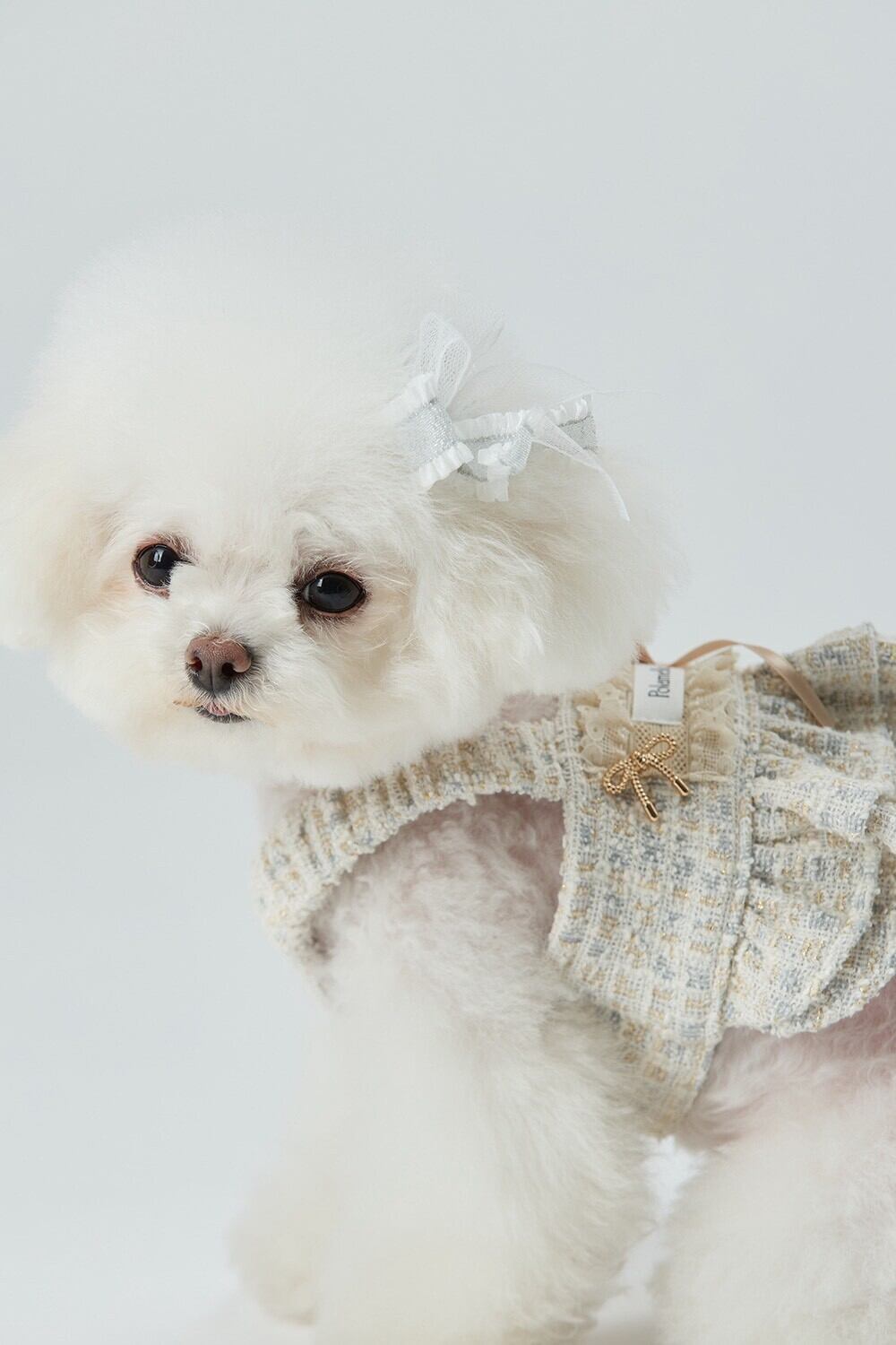 ベージュのツイードのテクスチャー、繊細なリボンのディテール、アトリエのクーティエツイードドレス♡♡