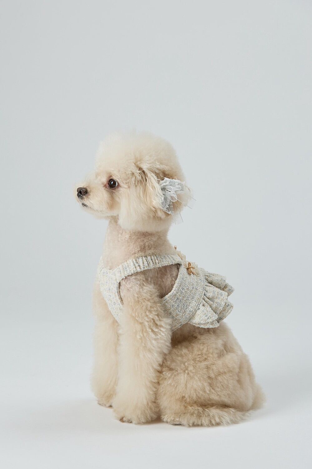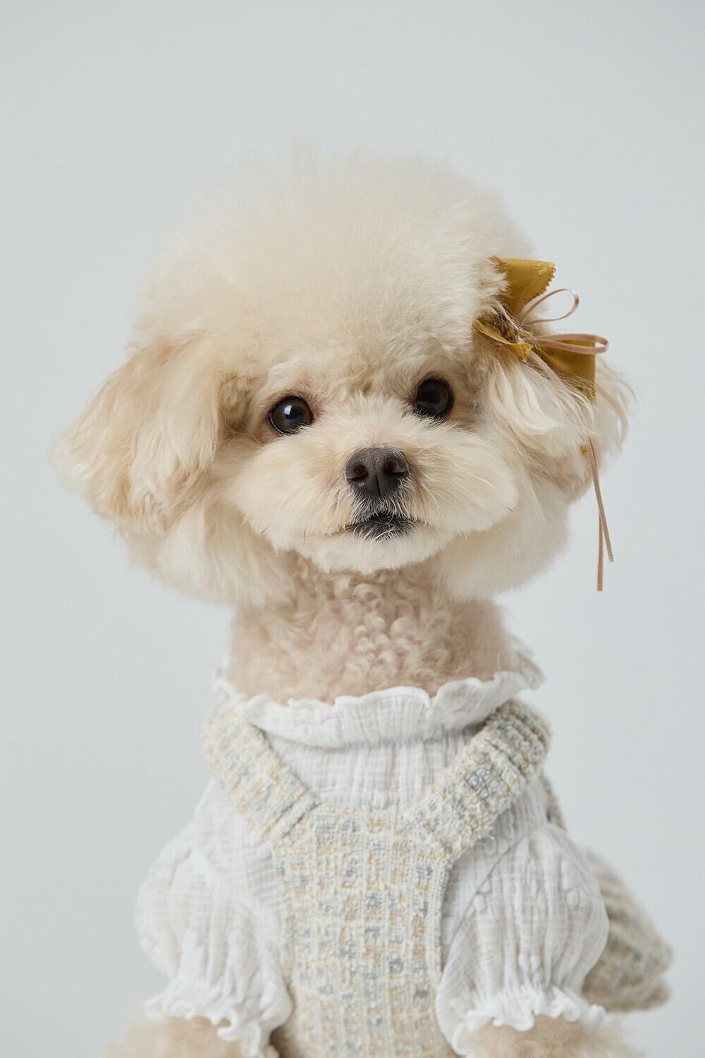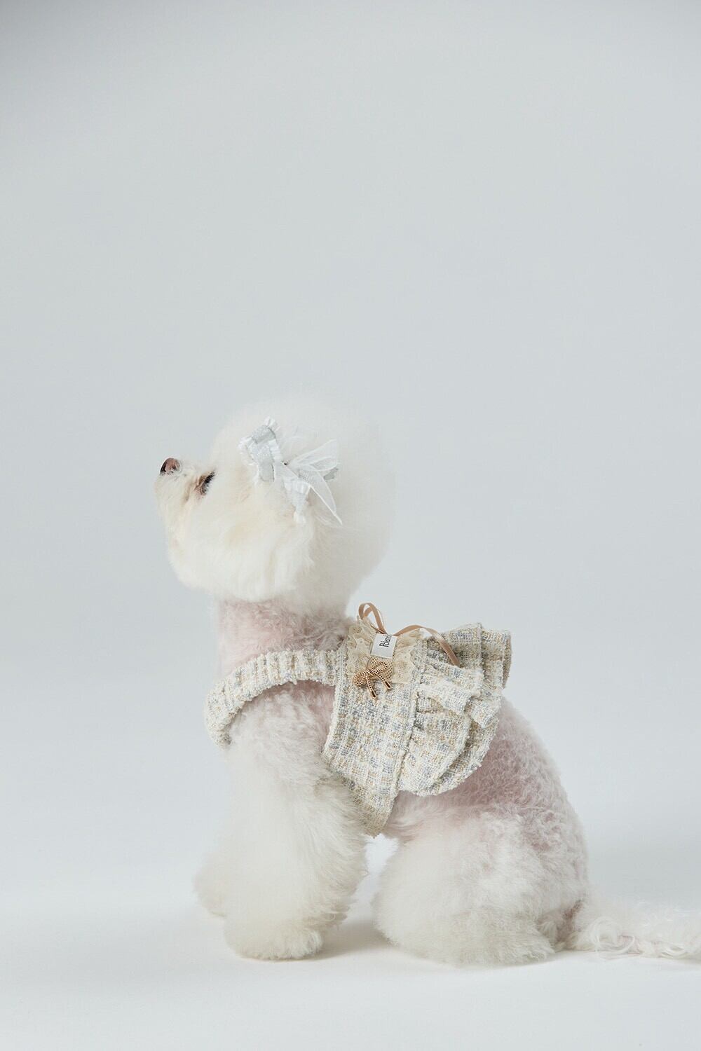 ベージュのツイードのテクスチャー、繊細なリボンのディテール、アトリエのクーティエツイードドレス♡♡