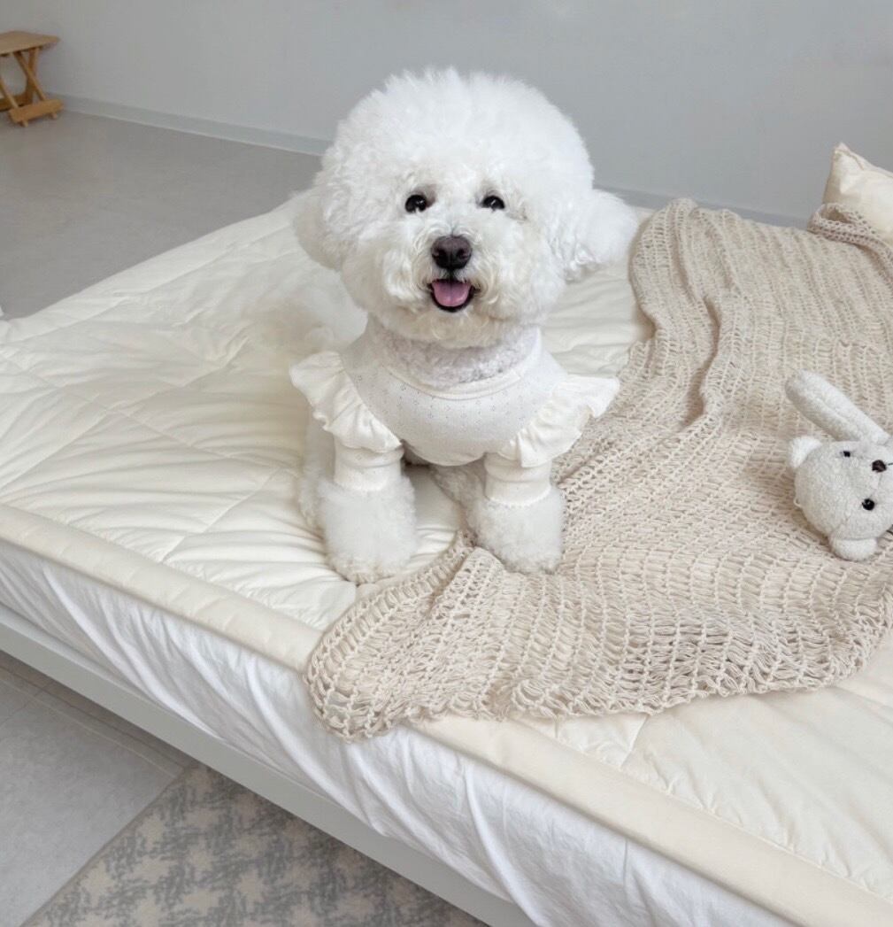 柔らかいアイレット生地に肩のフリル、ピコットデティールで