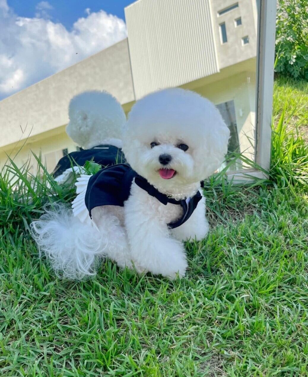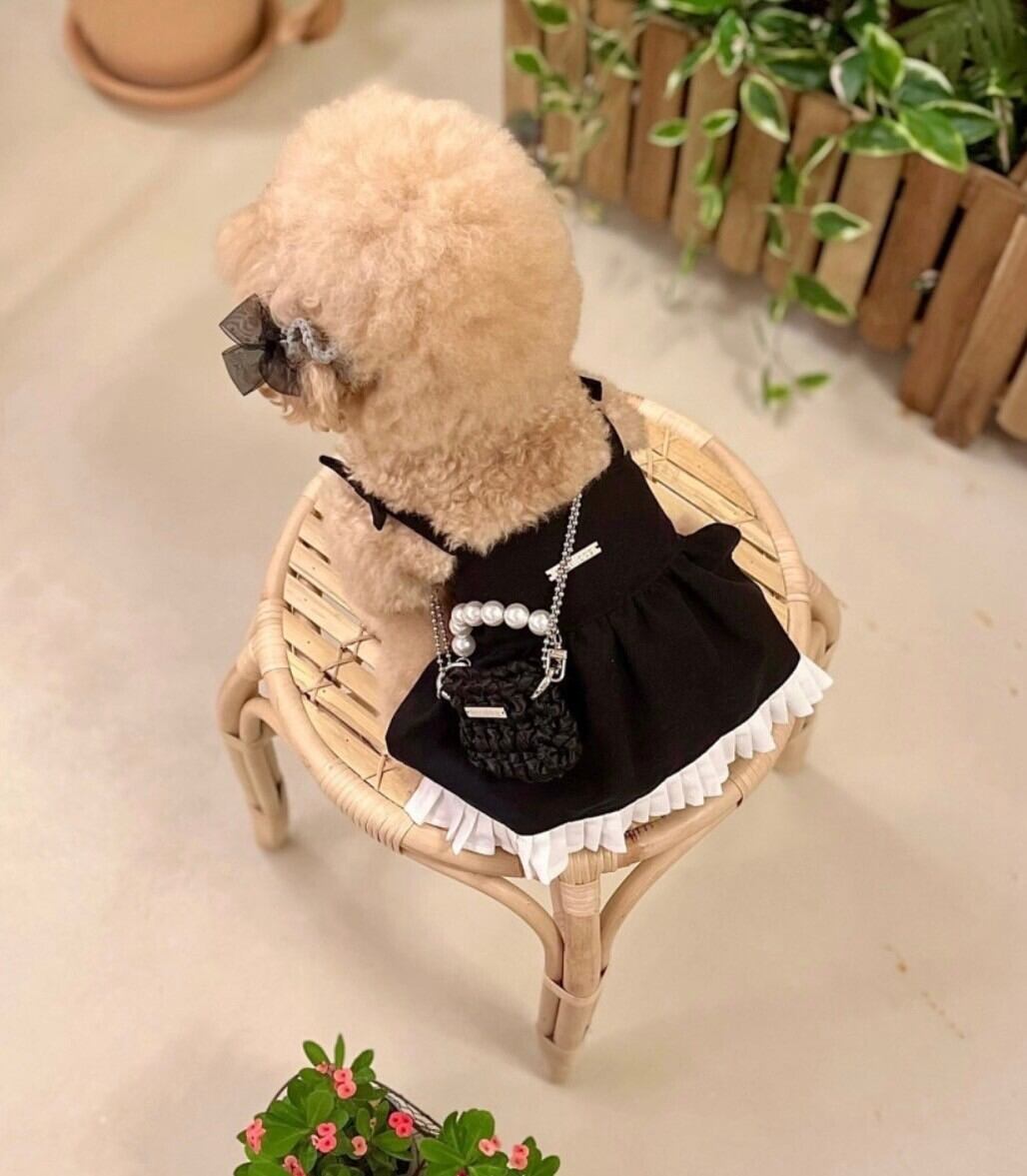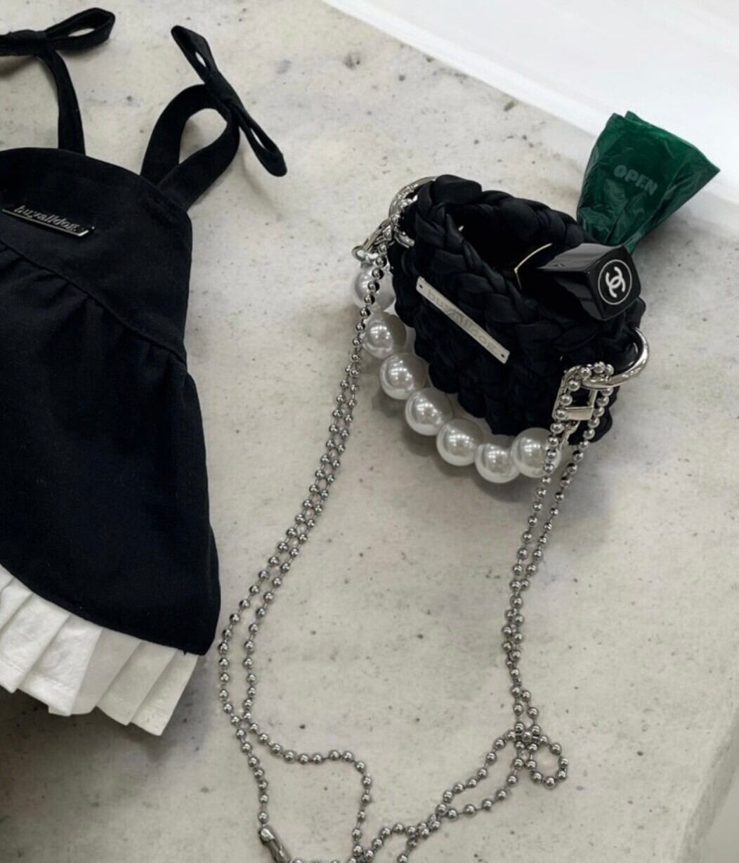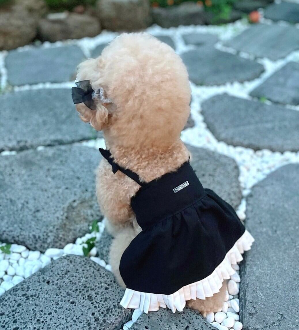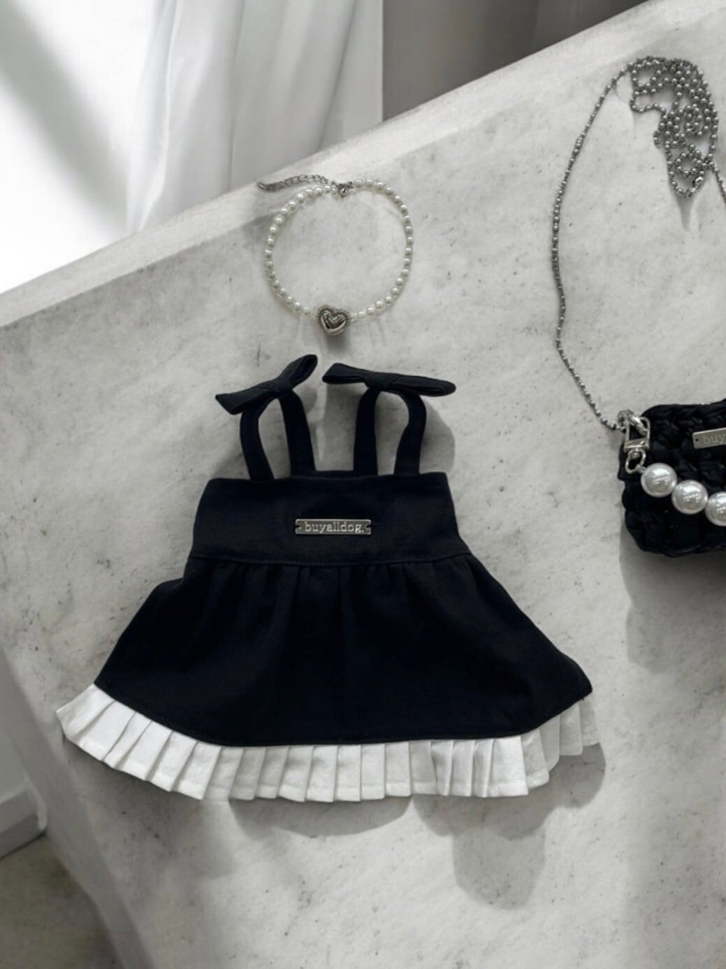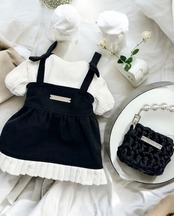 メッキのロゴプレートと肩のリボン、裾のフリルがポイントのデザイン♡