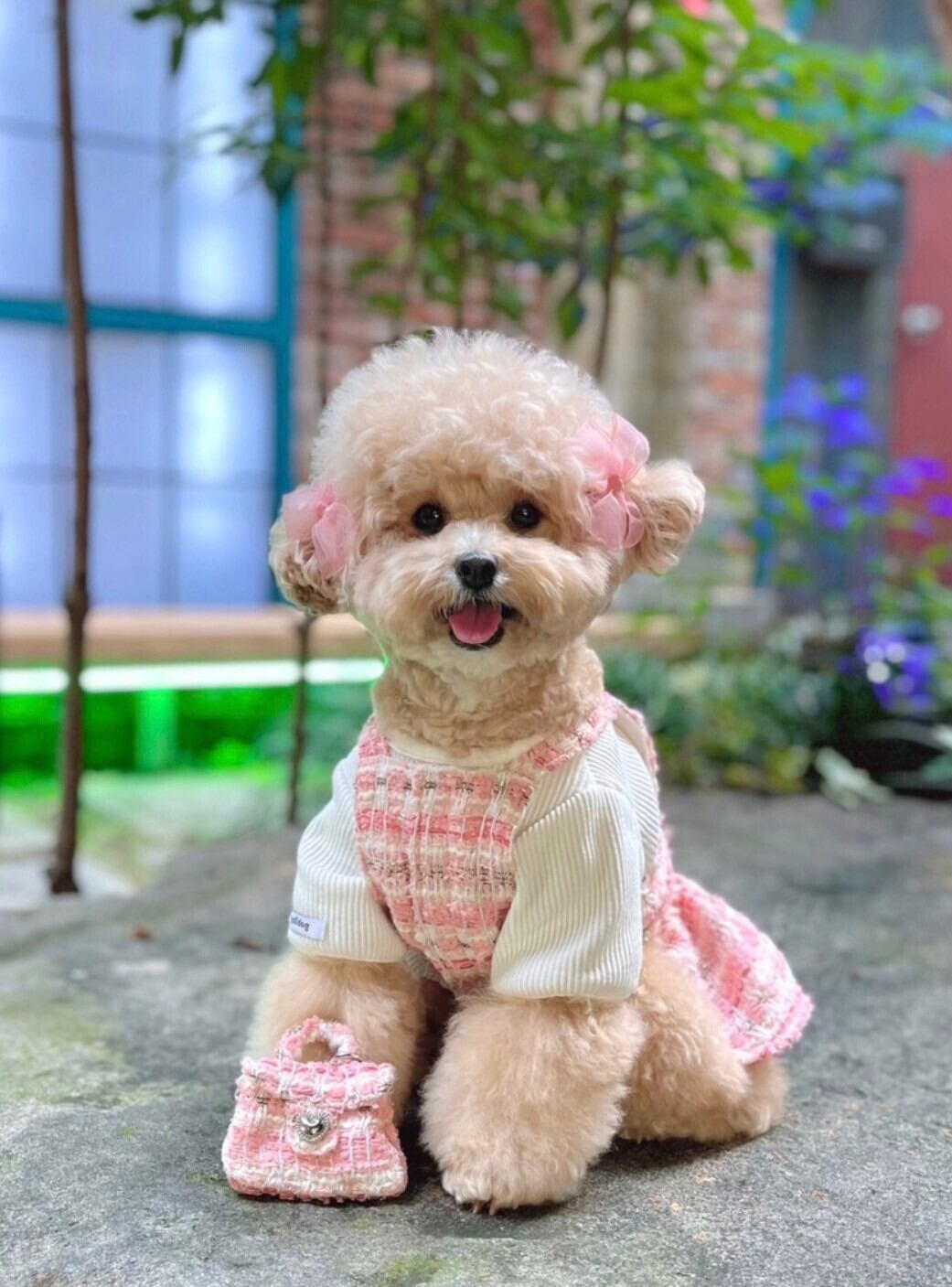 【BUYALLDOG】Love Herr Puppy ブラッシュドツイード ツーピース (トップス+スカート+コネクティングガイド2P)